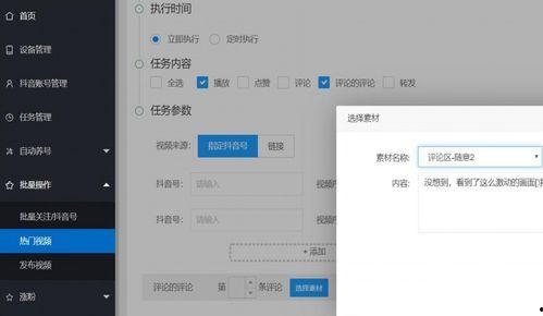 2. 任务设置:根据你的需求,设置发布时间、内容、点赞数量、评论内容等任务。比如,你可以设置每天定时发布一条短视频,点赞100个,评论10条。